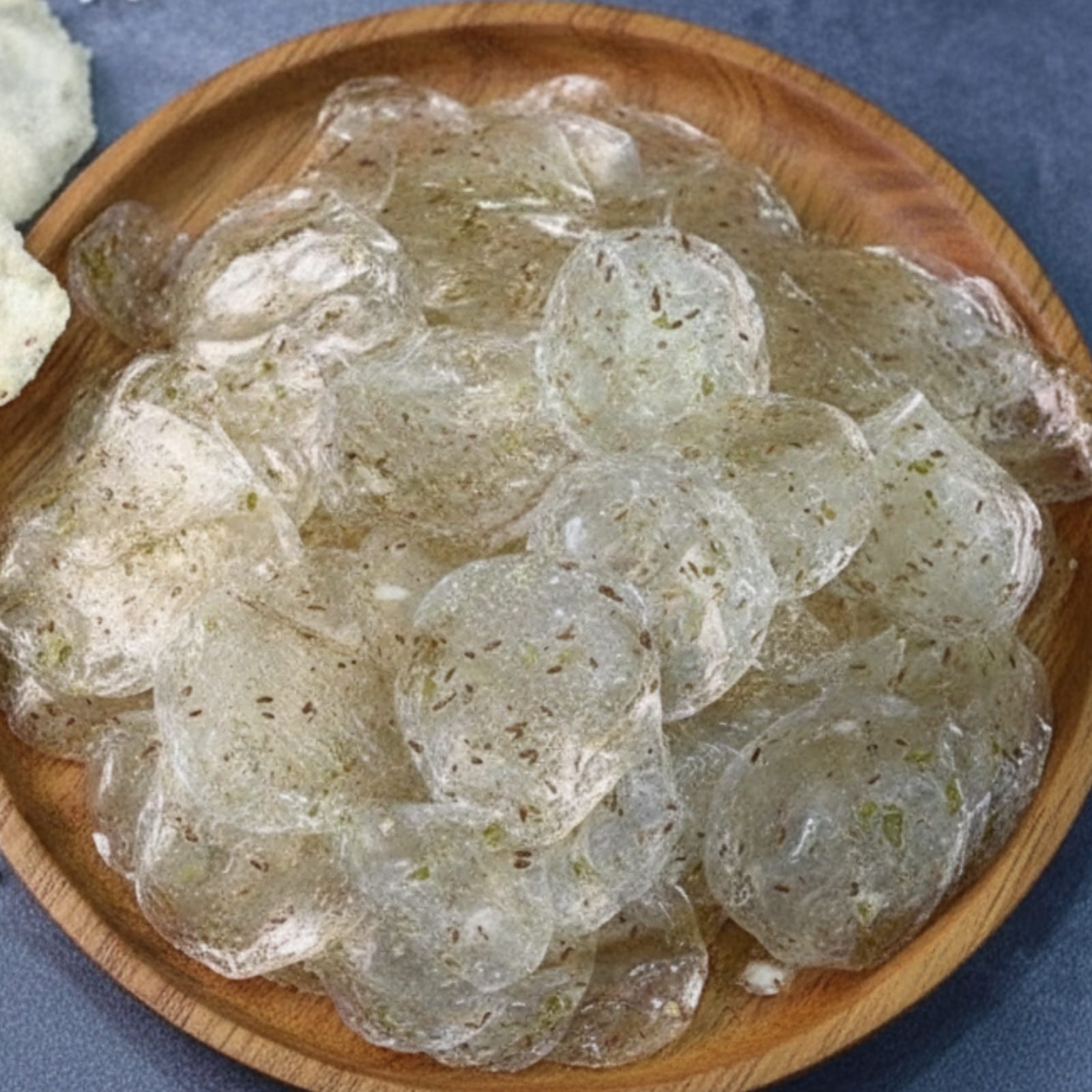 Biyam Pindi Vadiyalu are authentic Andhra-style sun-dried fryums prepared using high-quality rice flour blended with traditional spices and carefully shaped before being dried naturally under sunlight.