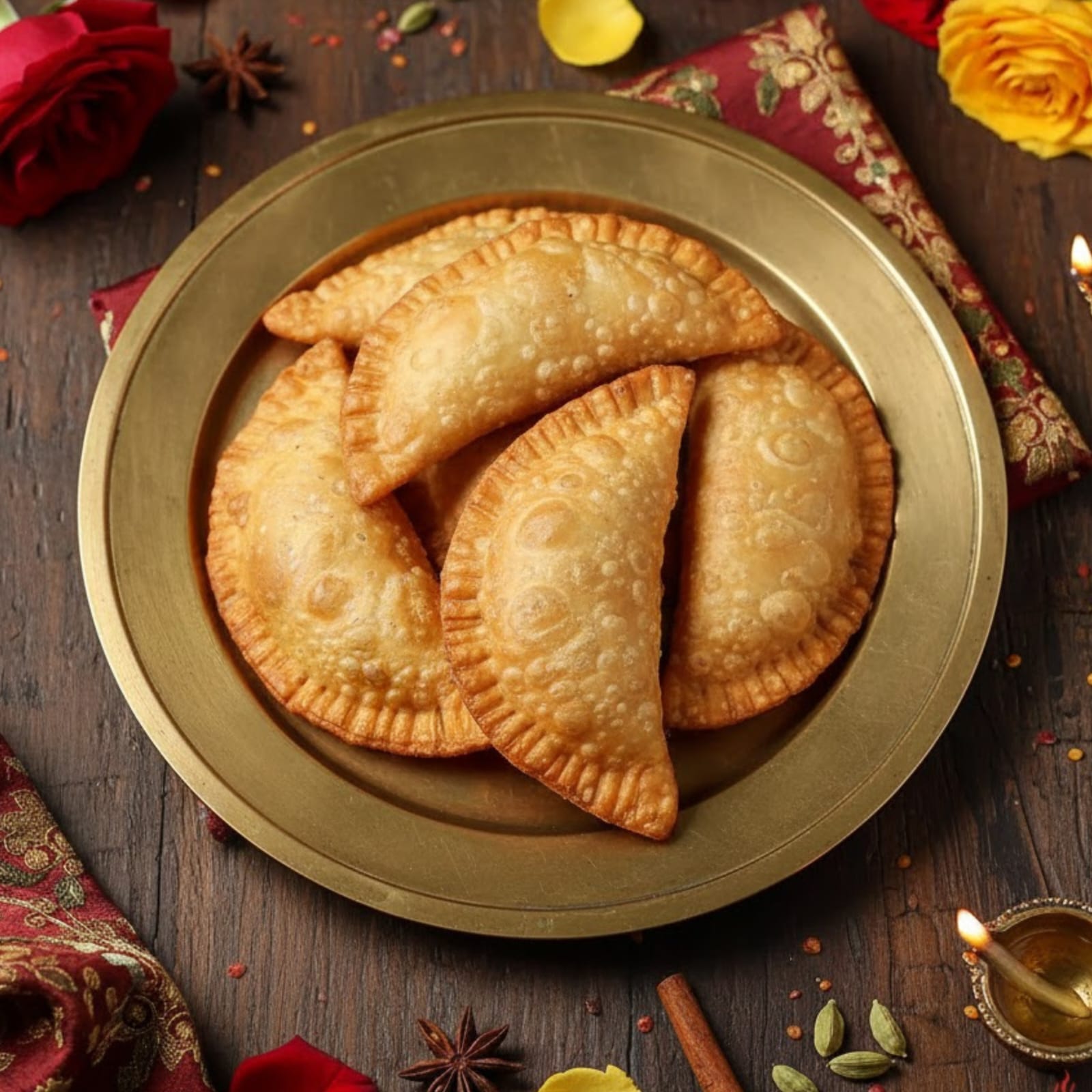 Order authentic Kajjikayalu made with coconut, jaggery, and dry fruits. Crispy Andhra festive sweet prepared fresh without preservatives.