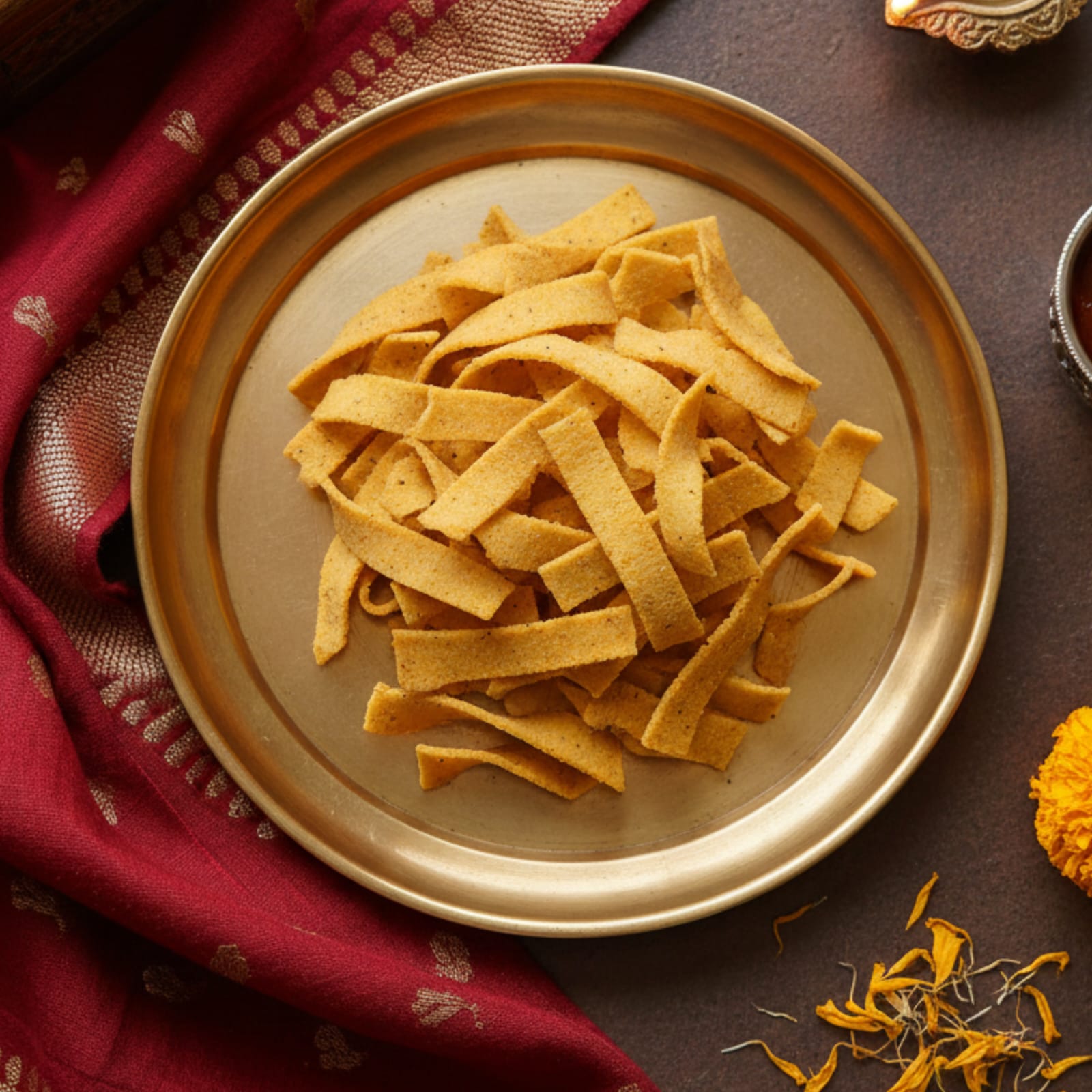 Perfectly crispy and mildly spicy, Ribbon Pakoda is a timeless snack enjoyed during festivals, celebrations, and everyday tea-time moments.